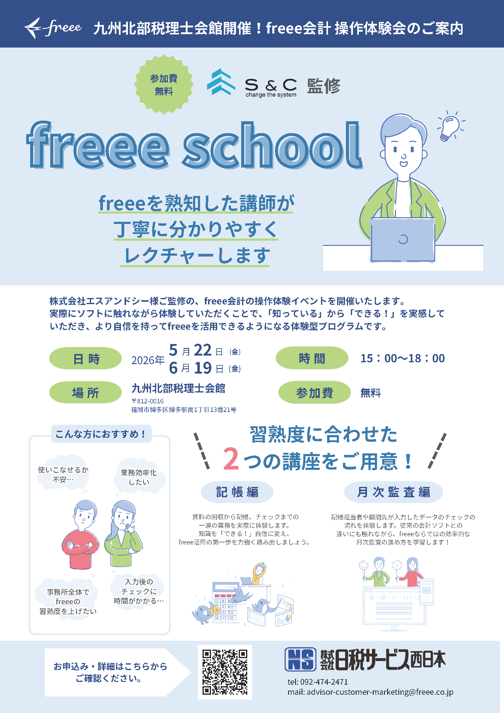 そんなお悩みをお持ちの皆様へ、前回も大変ご好評をいただいた体験型プログラム「freeeスクール」を開催いたします!